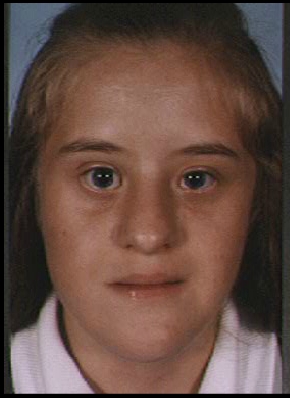 This is an example of the appearance of a patient with Down's syndrome, or trisomy 21, who has an ostium primum type of atrial septal defect.