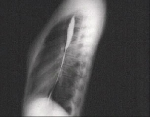 The lateral X ray with barium swallow shown here clearly demonstrates the reduced anteroposterior dimension with a loss of